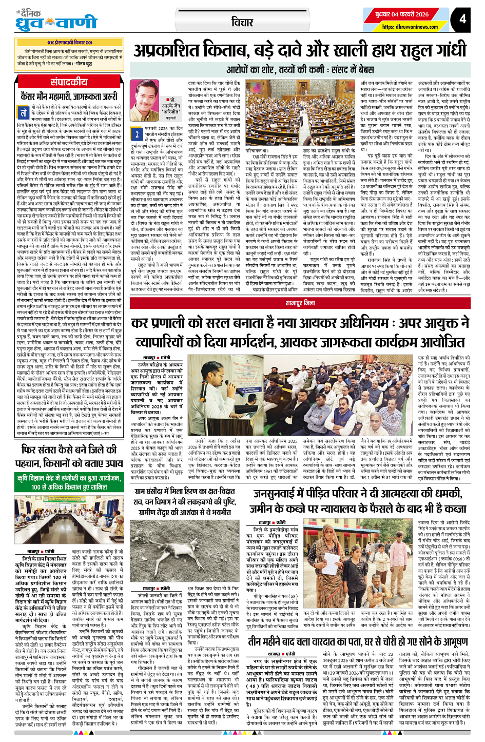 04 फ़रवरी 2026 दैनिक ध्रुव वाणी ई-पेपर Page: 4 February 04, 2026 << First << 4 >> Last >> Page 1Page 2Page 3Page 4Page 5Page 6Page 7Page 8 × 04 फ़रवरी 2026 दैनिक ध्रुव वाणी ई-पेपर << First << 4 >> Last >> 48038734803875480387948038774803881480388048038824803878 4803877