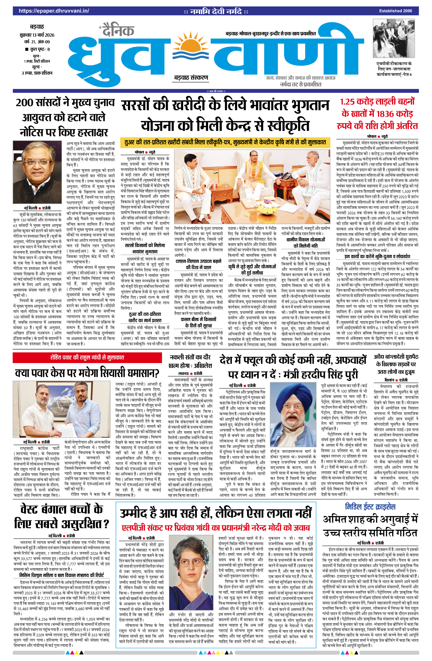 13 मार्च 2026 दैनिक ध्रुव वाणी ई-पेपर